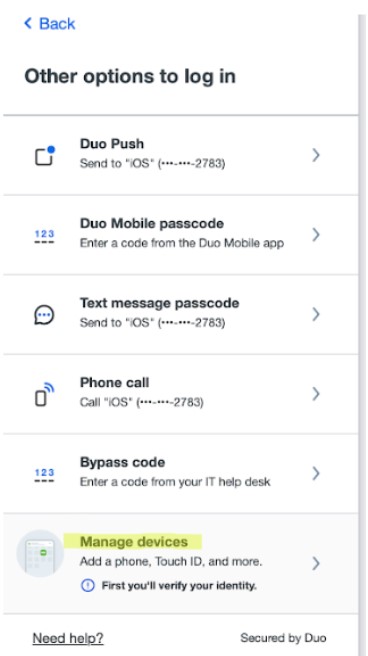 If you have enrolled in Duo already and want to add/modify, then it will require you to go through Duo authentication first before you can make any changes.