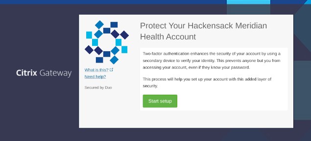 In order to protect Hackensack Meridian Health, we require the use of 2-Factor Authentication or Duo.