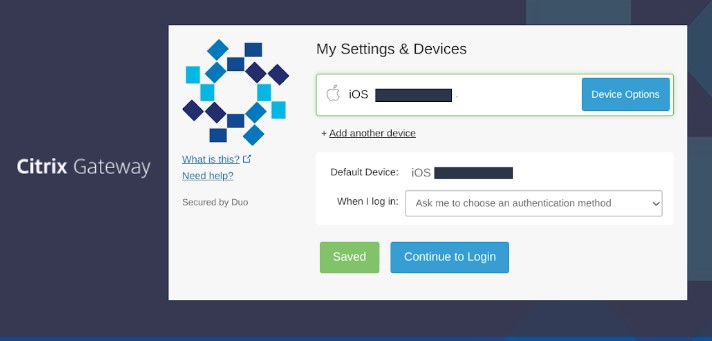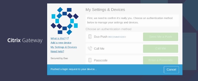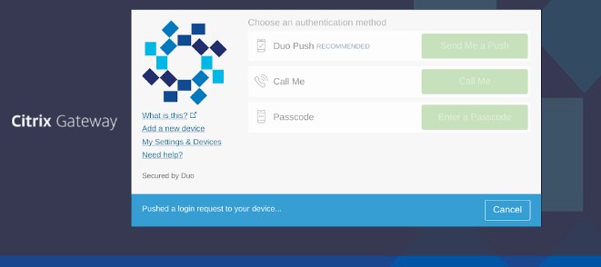 Please see instructions below for enrolling in Duo authenticator using Onelogin or Citrix.